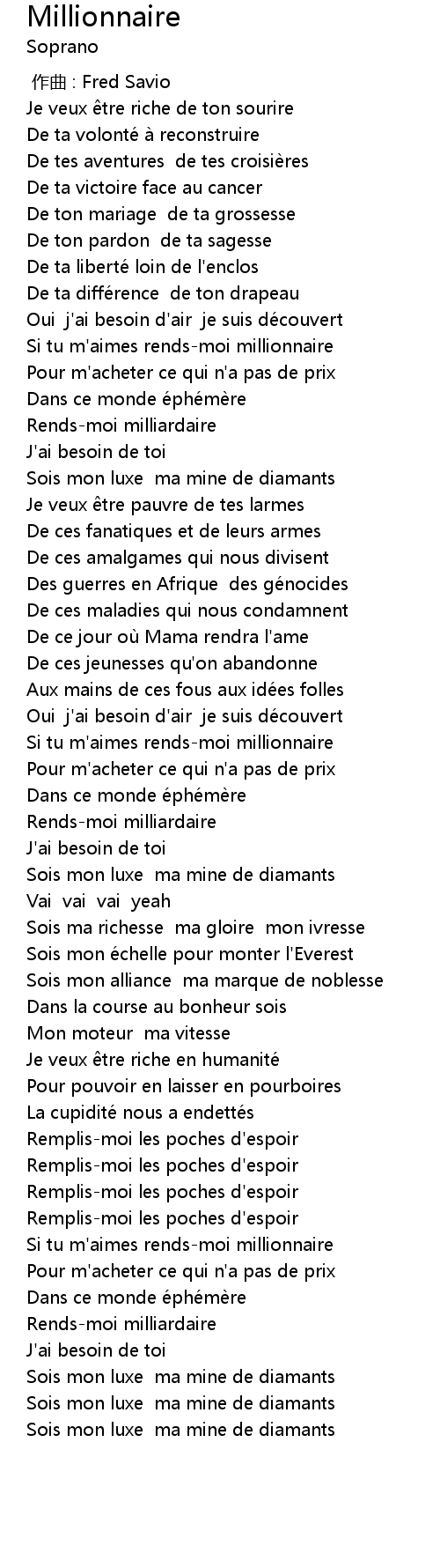 | [02:15.42] | Si tu m'aimes rends-moi millionnaire |