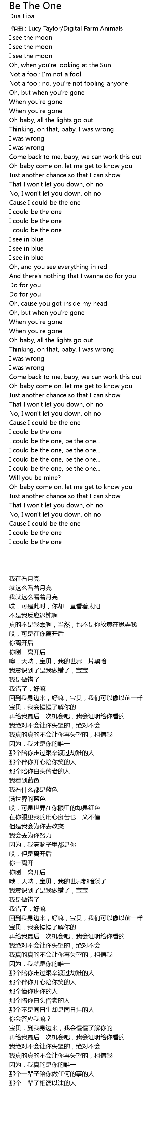 | 歌曲 | Be The One |