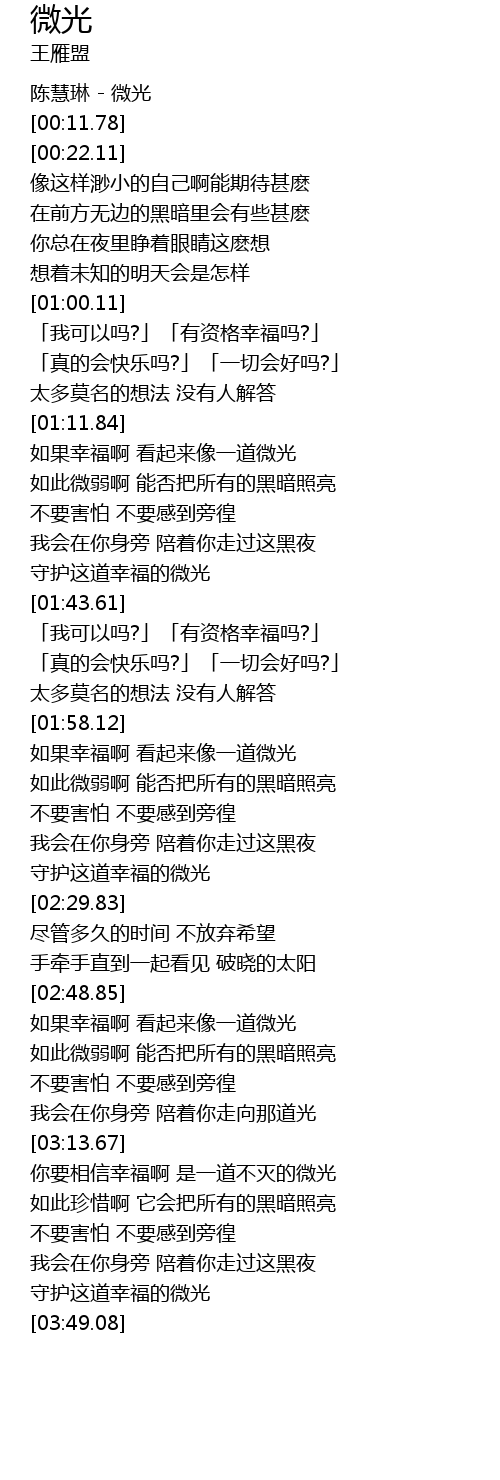| [00:00.21] | 陈慧琳 - 微光 |