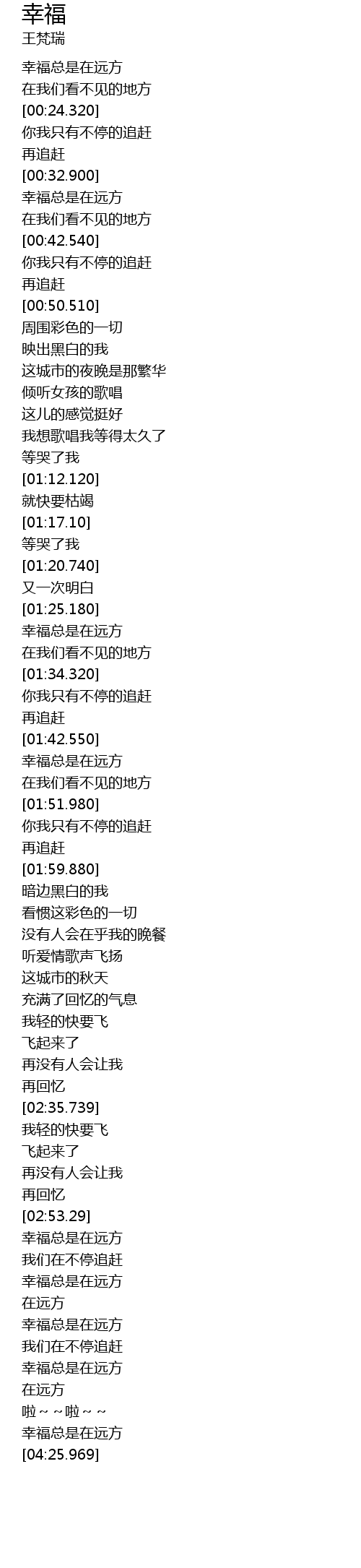 | [00:35.590] | 幸福总是在远方 |
