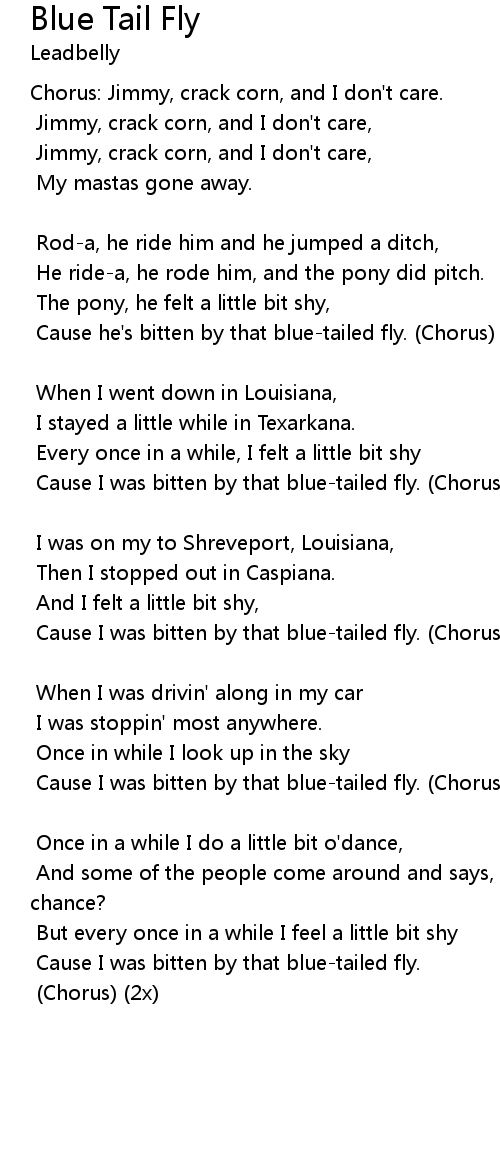 Cause I was bitten by that blue-tailed fly. (Chorus) |