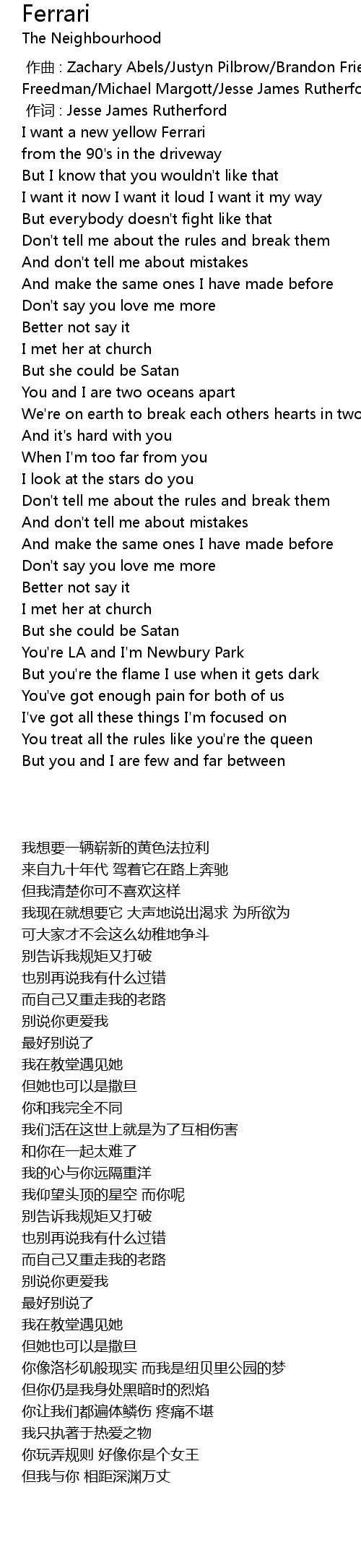 | [00:01.00] | 作词 : Jesse James Rutherford |