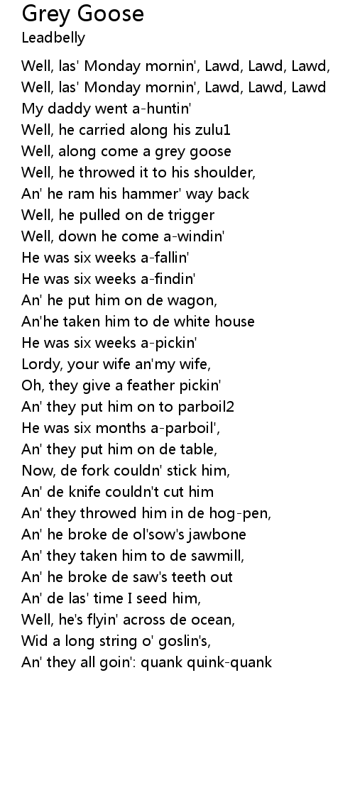 Well, along come a grey goose |