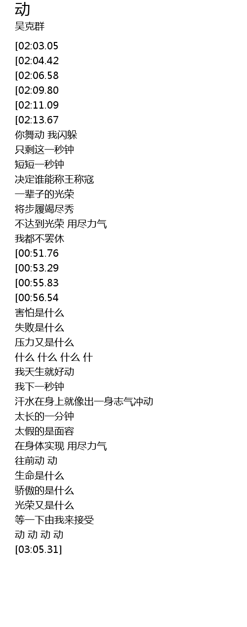 | [02:34.33][02:03.05][01:05.64][00:22.01] | 动 动 动 |