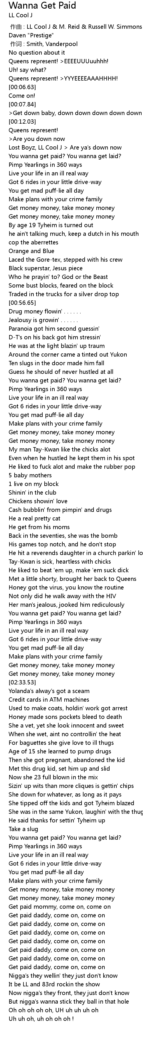 | [00:17.52] | You wanna get paid? You wanna get laid? |
