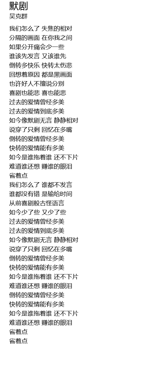 | [01:45.32] | 如今像默剧无言 静静相对 |