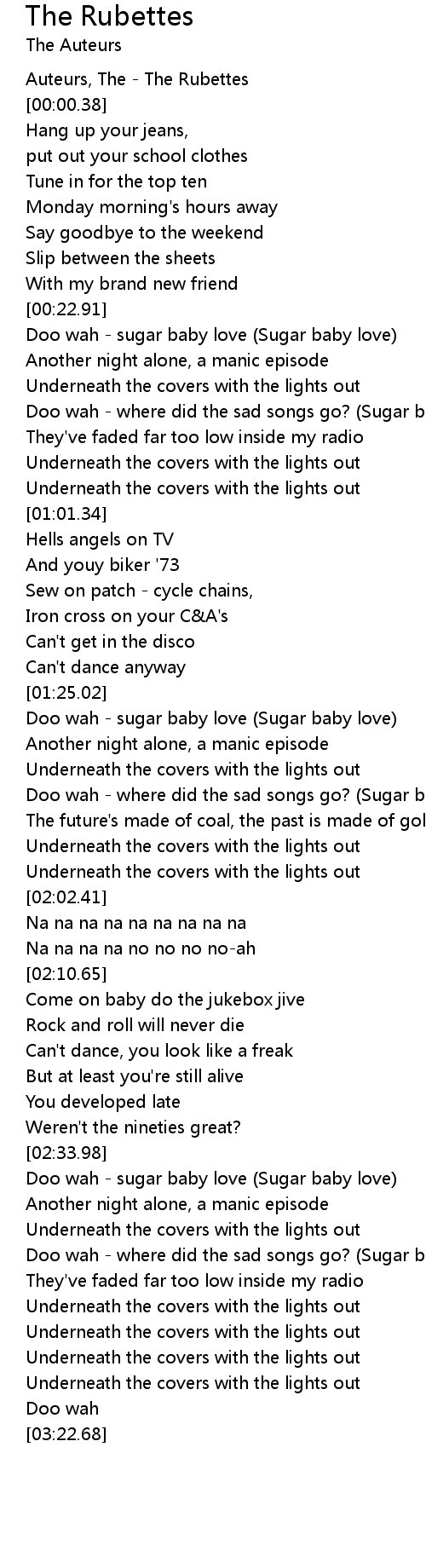 Doo wah - where did the sad songs go? (Sugar baby love) |