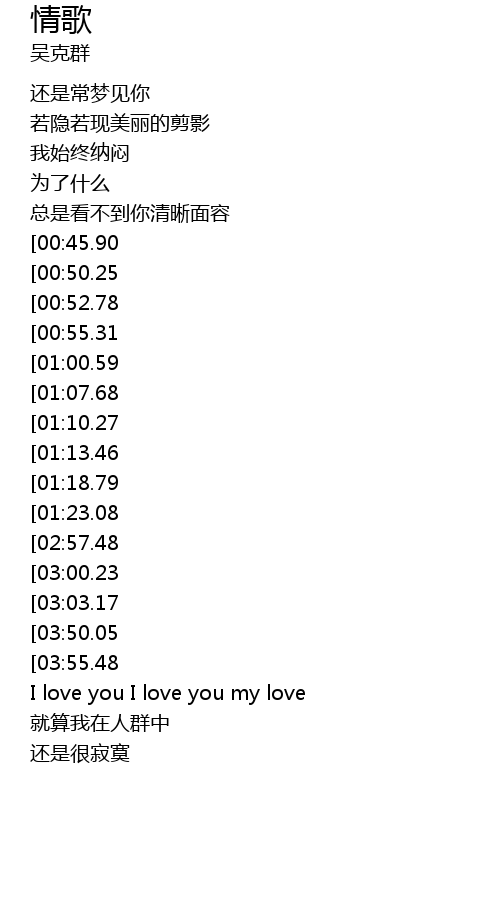 | [03:38.80][02:57.48][01:28.36] | ài qíng xiàng yī shǒu gē |