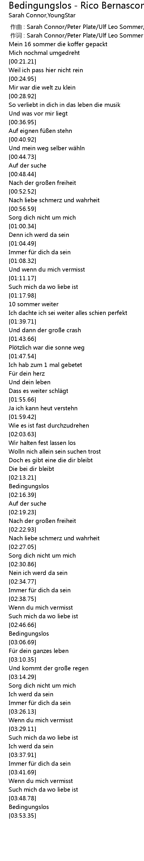 | [00:01.00] | 作词 : Sarah Connor/Peter Plate/Ulf Leo Sommer |