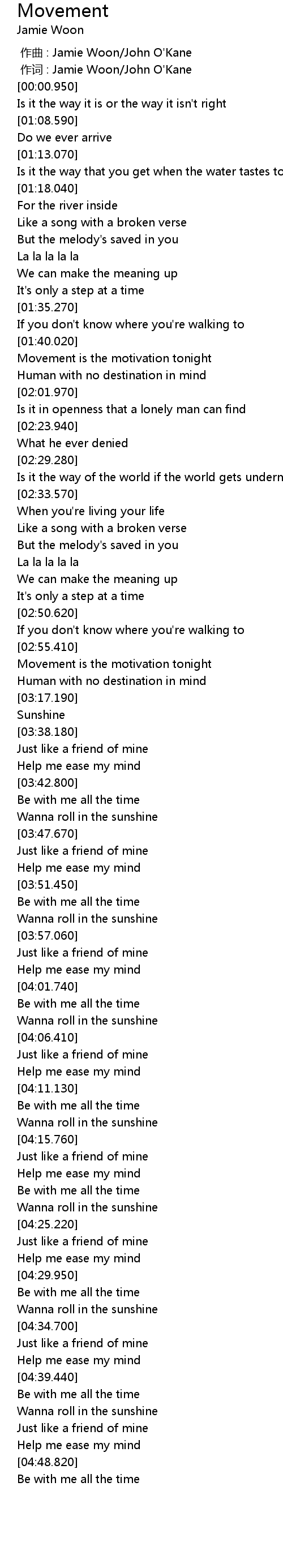 | [00:00.00] | zuò qǔ : Jamie Woon John O' Kane |