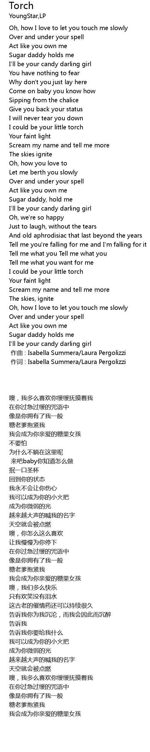 | [00:00.00] | 作词 : Isabella Summera/Laura Pergolizzi |