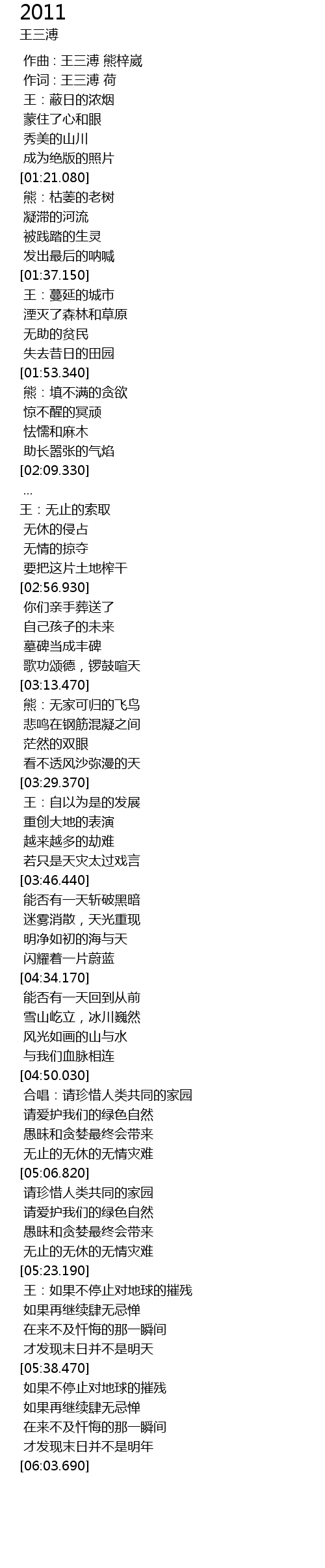 | [04:50.790] | 合唱:请珍惜人类共同的家园 |