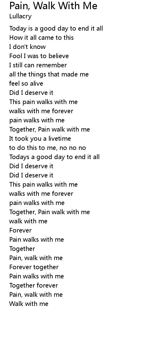 | Pain, walk with me | |