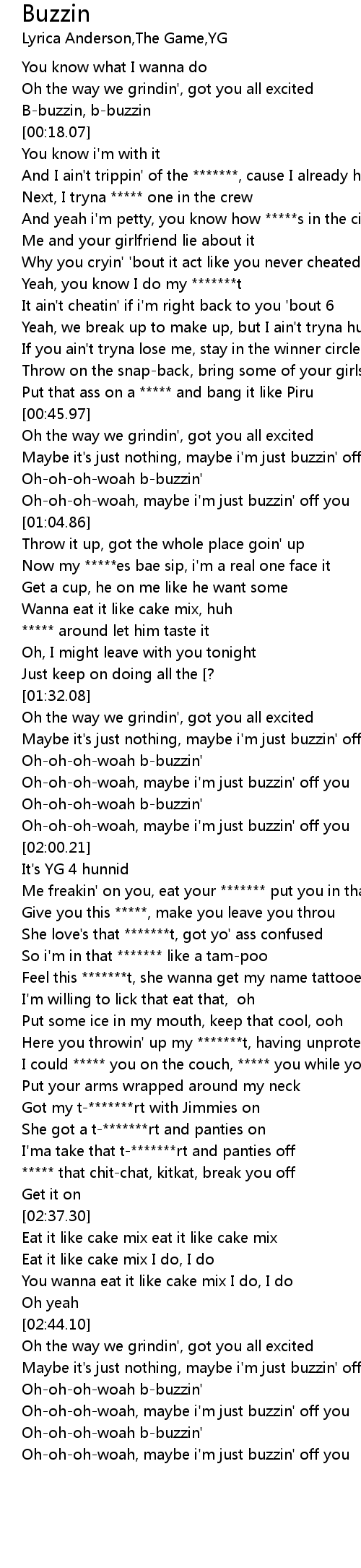 | [03:04.65] | Oh-oh-oh-woah b-buzzin' |