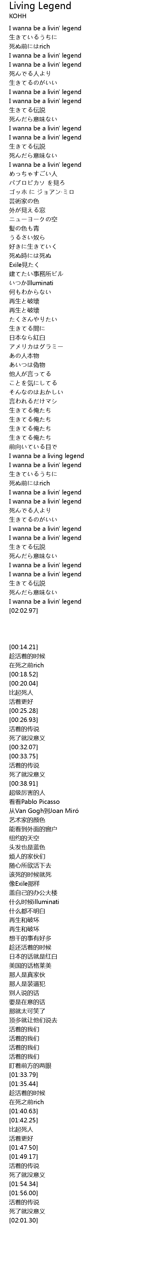 | [01:50.90] | 生きてる伝説 |