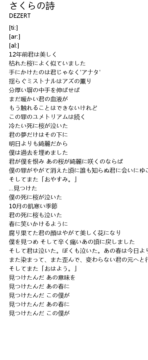 | [02:34.20] | 僕の死に桜が泣いた |