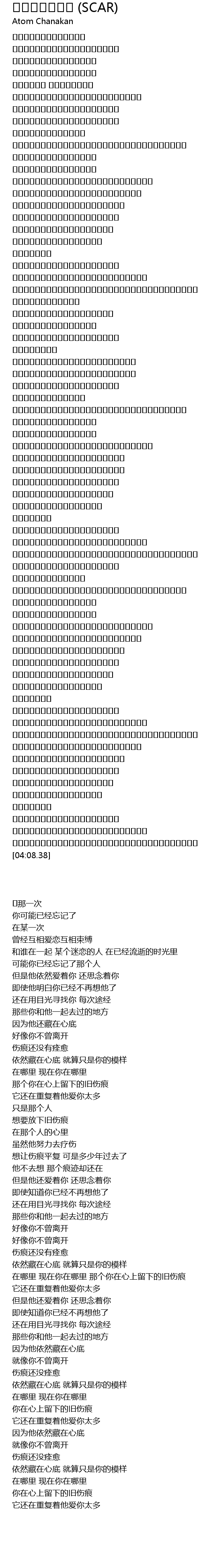 | [04:01.25] | 你在心上留下的旧伤痕 |