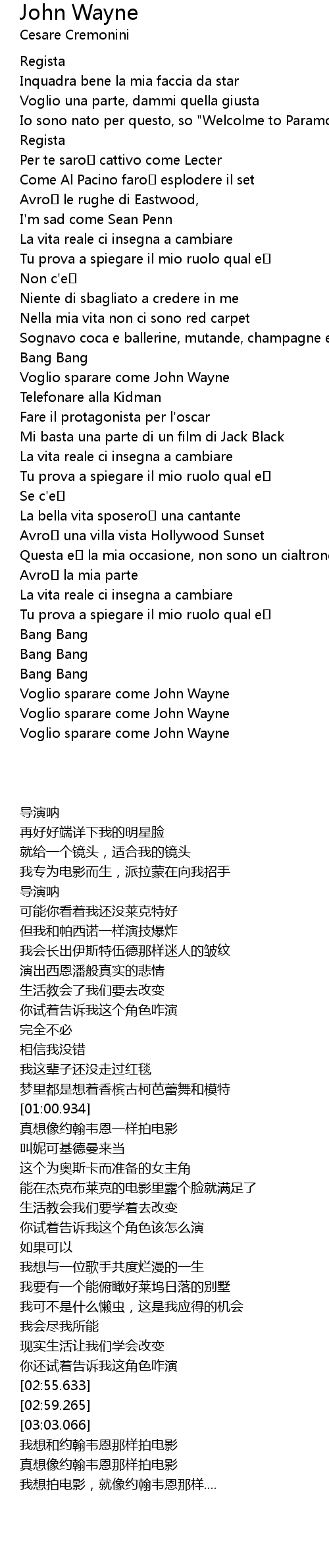 | [03:04.658] | 我想和约翰韦恩那样拍电影 |