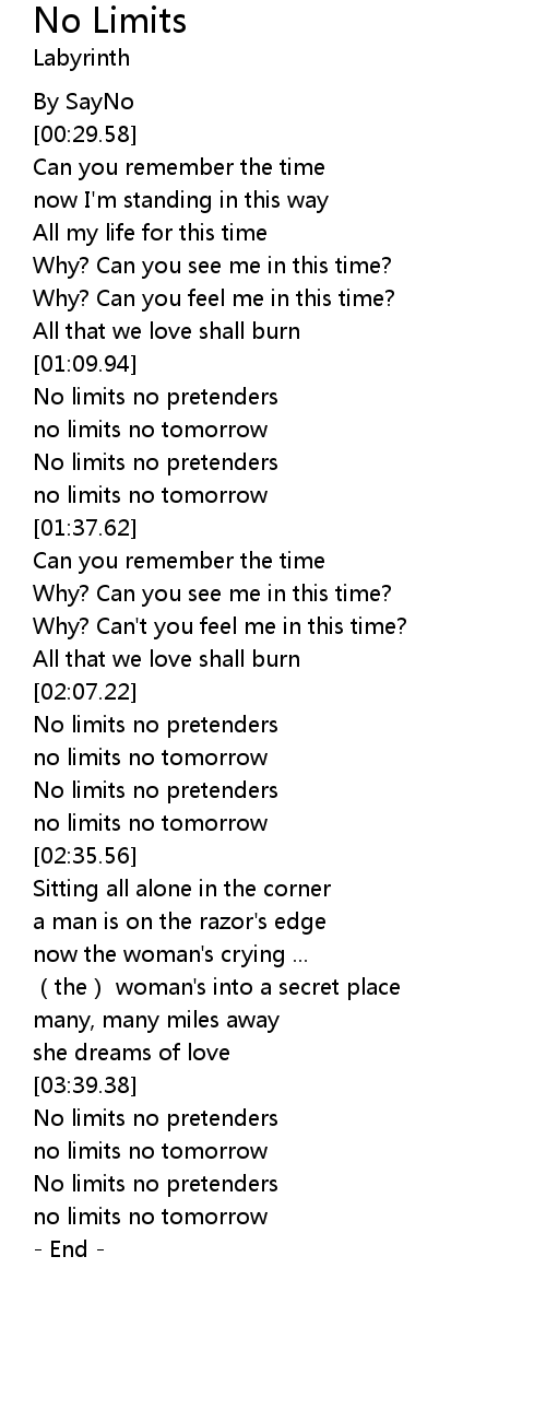 | [02:22.26] | no limits no tomorrow |