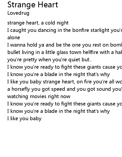 I like you baby strange heart, on fire you're all woman but you're dreaming like a horsefly you got speed and you got sound you're making movies, but no one's watching movies right now |