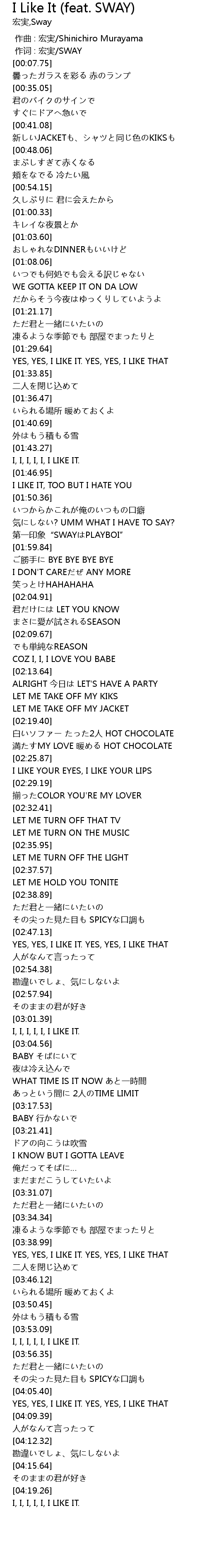 | [03:40.45] | YES, YES, I LIKE IT. YES, YES, I LIKE THAT |
