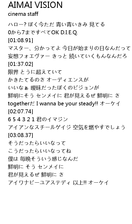 | [03:59.99] | アイワナビーユアステディ 以上!! オーケイ |