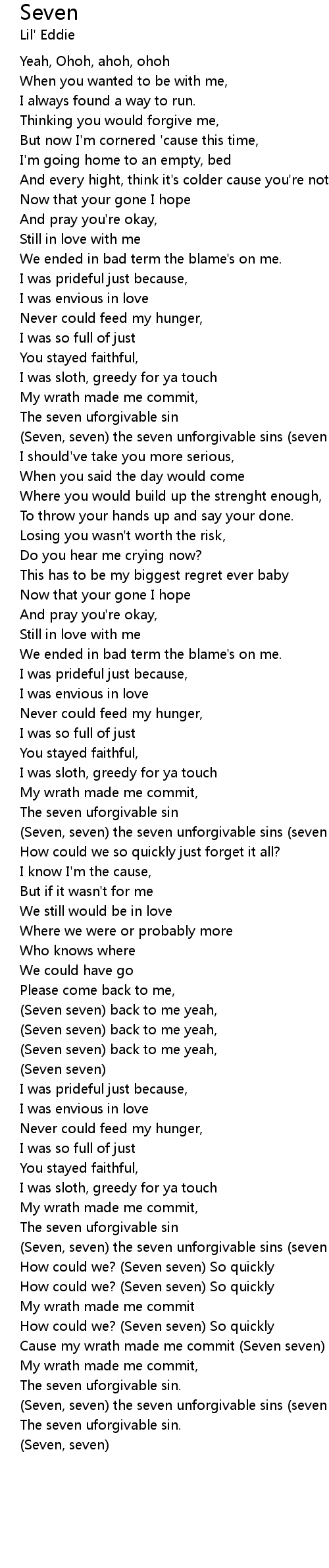 (Seven, seven) the seven unforgivable sins (seven seven) oh yeah |