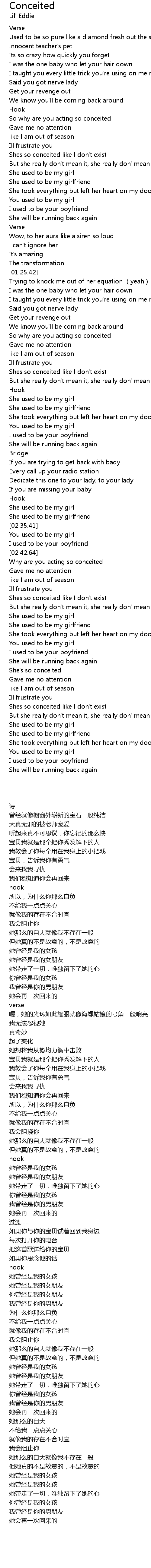 | [00:53.35] | Shes so conceited like I don't exist |