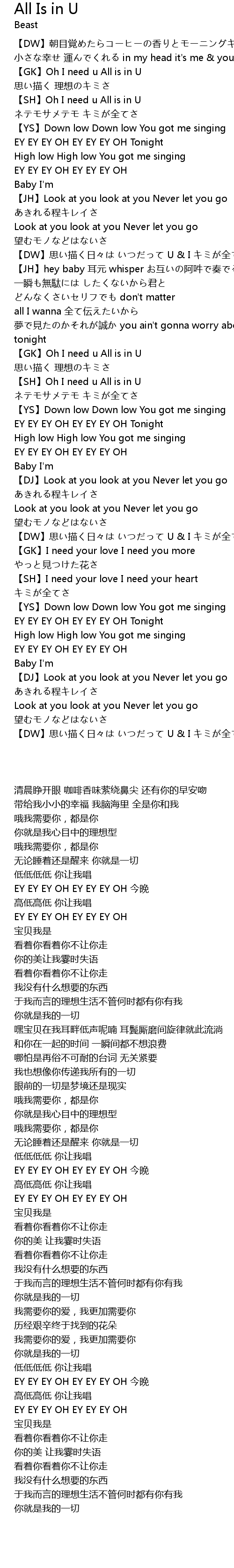 | 歌曲 | All Is in U |