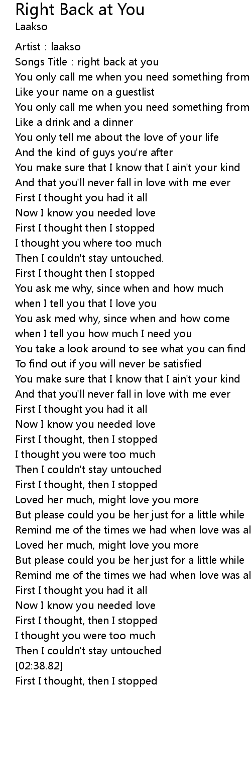 | [00:31.50] | You make sure that I know that I ain't your kind |