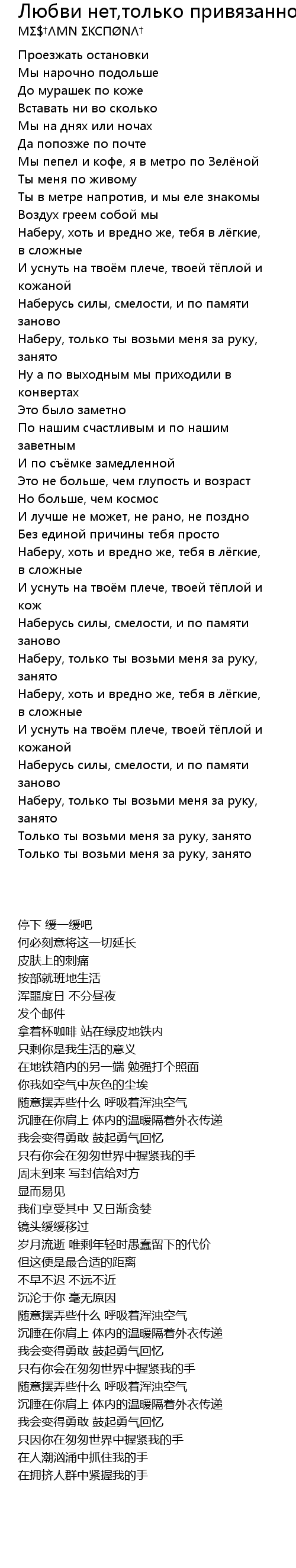 | 歌曲 | Любви нет,только привязанность. |
