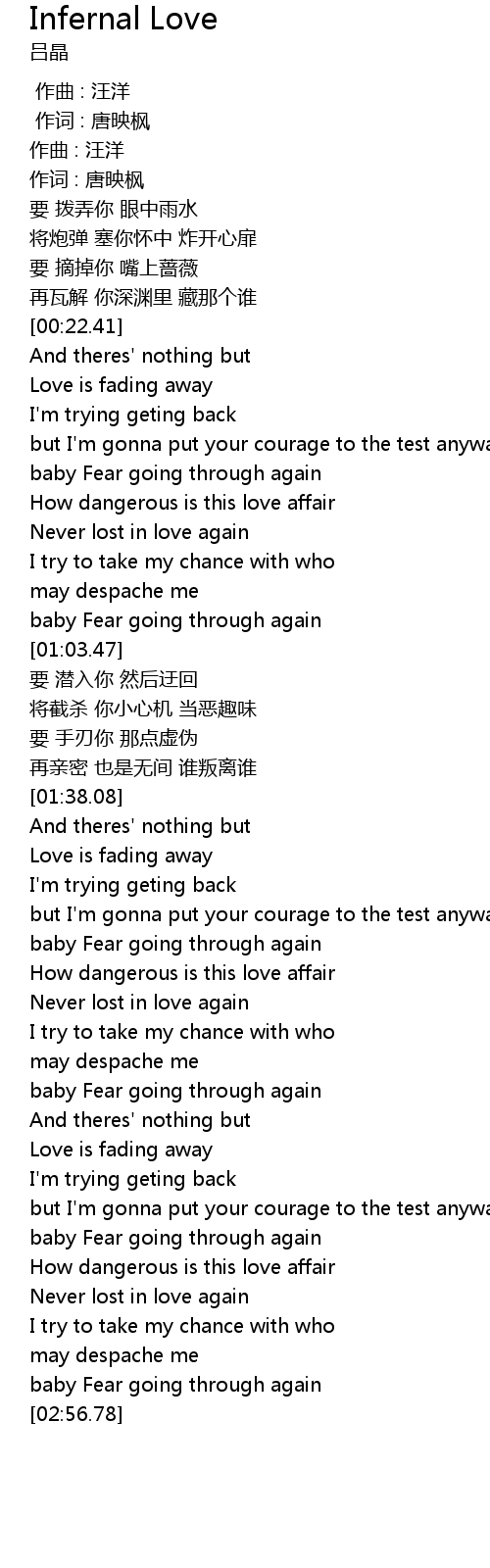 | [00:45.70] | baby Fear going through again |
