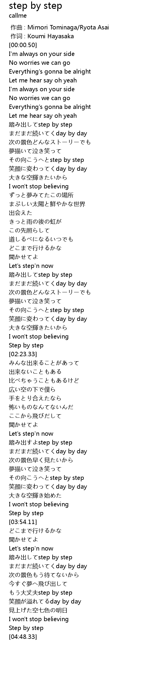 | [03:18.12] | 踏み出すよstep by step |