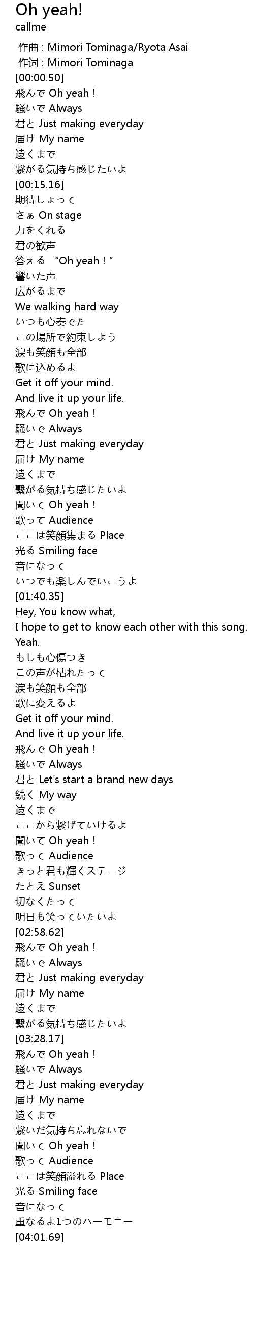 | [02:43.61] | 聞いて Oh yeah! |