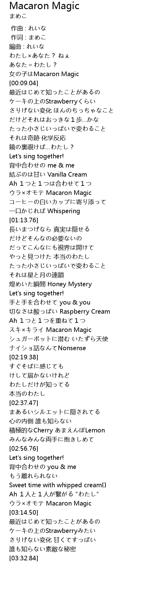 | [02:07.72] | スキ×キライ Macaron Magic |