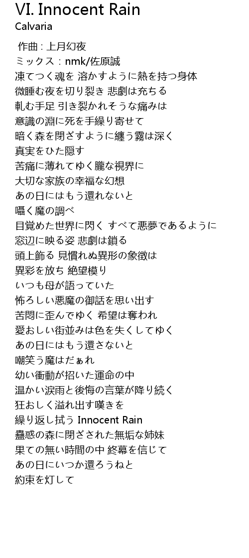 | [03:47.43] | 繰り返し拭う Innocent Rain |