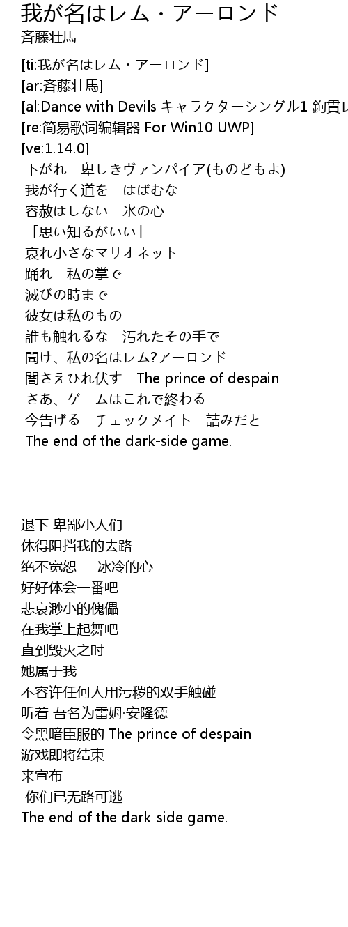 | [01:01.27] | 听着 吾名为雷姆·安隆德 |
