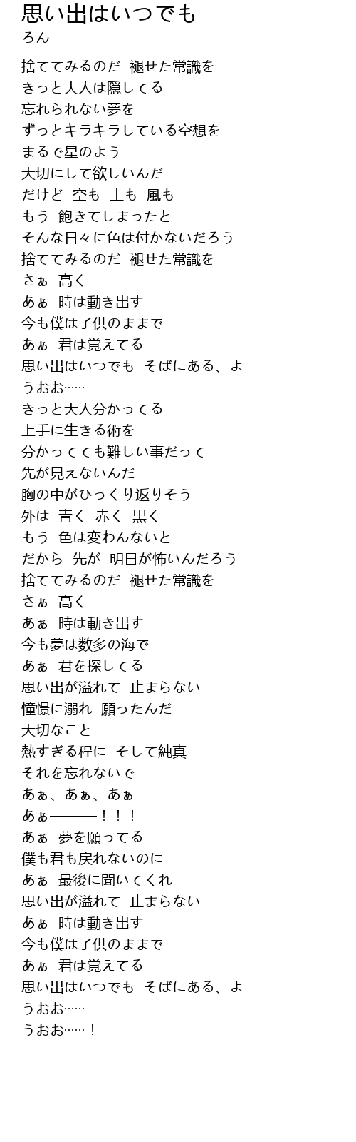 思い出はいつでも そばにある、よ |