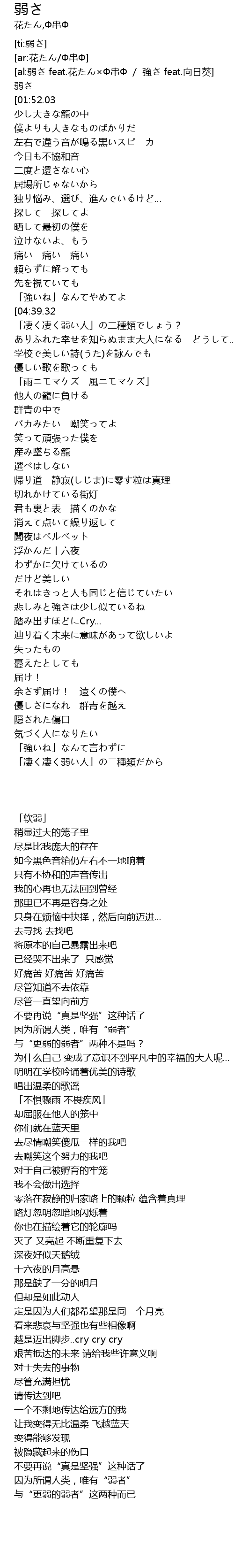 | [al:弱さ feat.花たん×Φ串Φ / 強さ feat.向日葵] | |