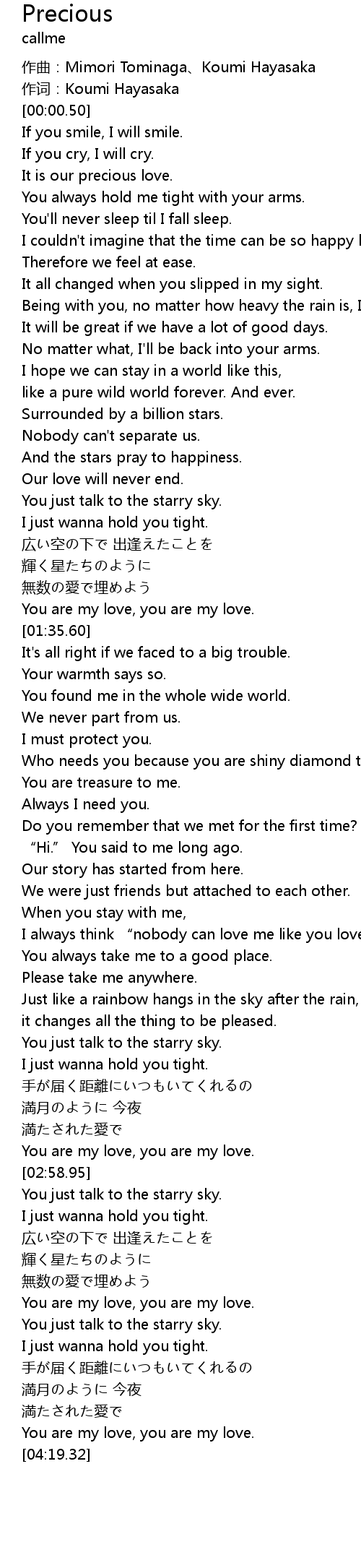 | [02:03.53] | You are treasure to me. |