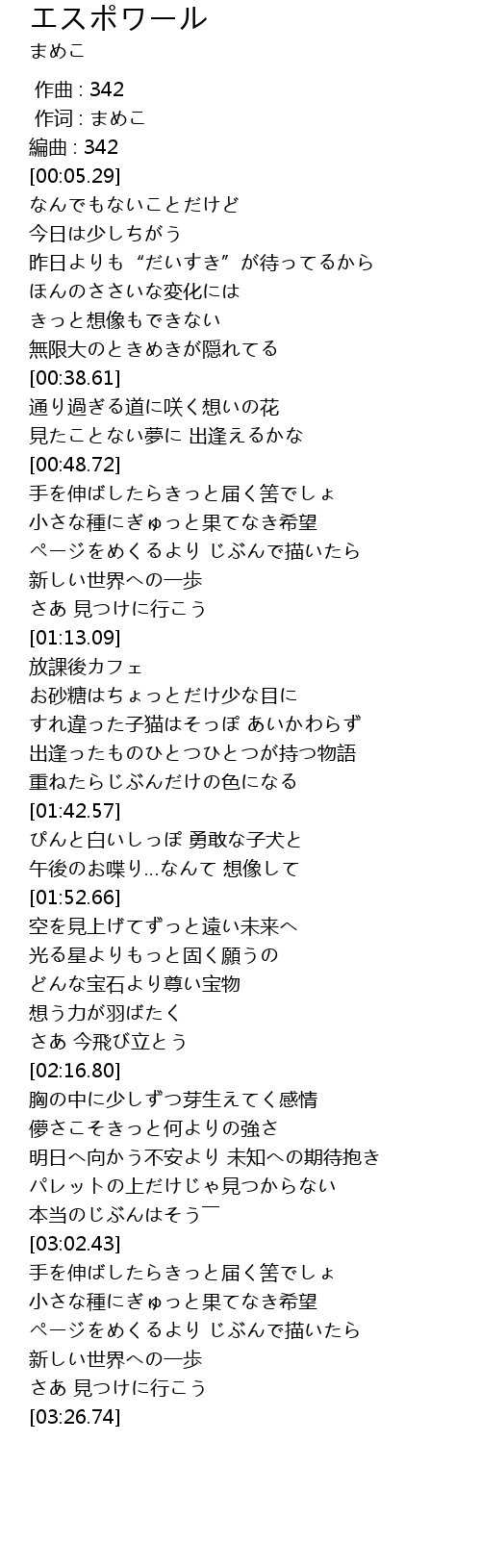 | [00:03.29] | 編曲 : 342 |
