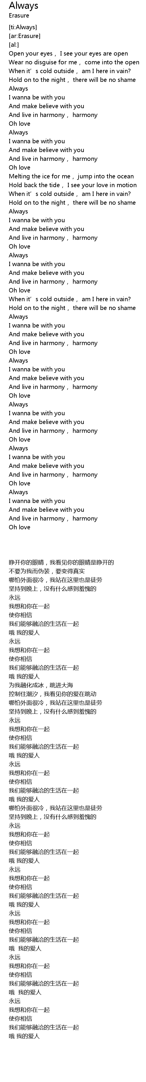 | 专辑 | Always - The Very Best of Erasure (Deluxe Version) |