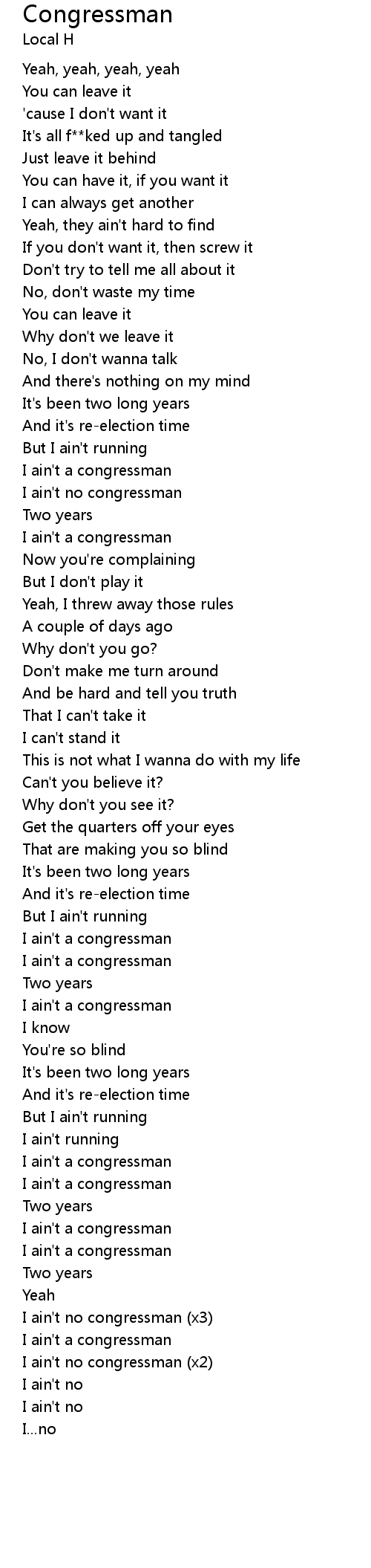 Congressman 歌词