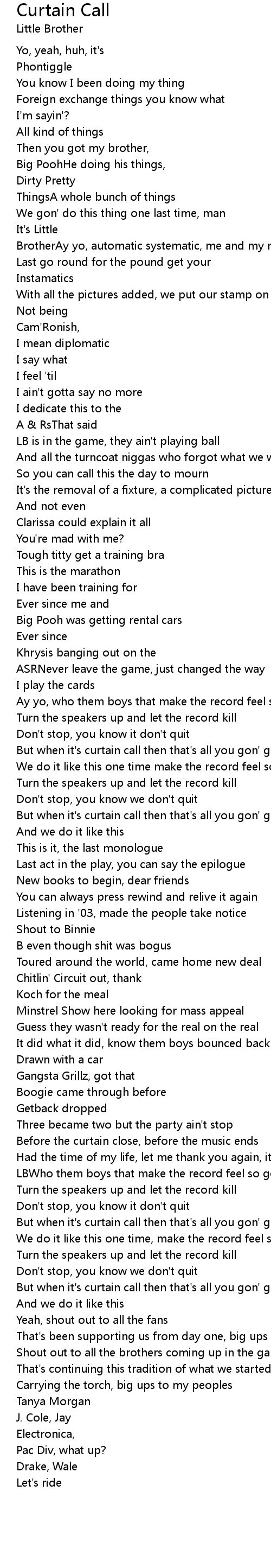 But when it's curtain call then that's all you gon' get |
