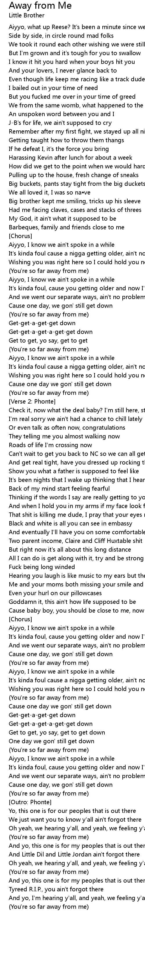 | It's kinda foul, cause you getting older and now I'm missing your smile | |