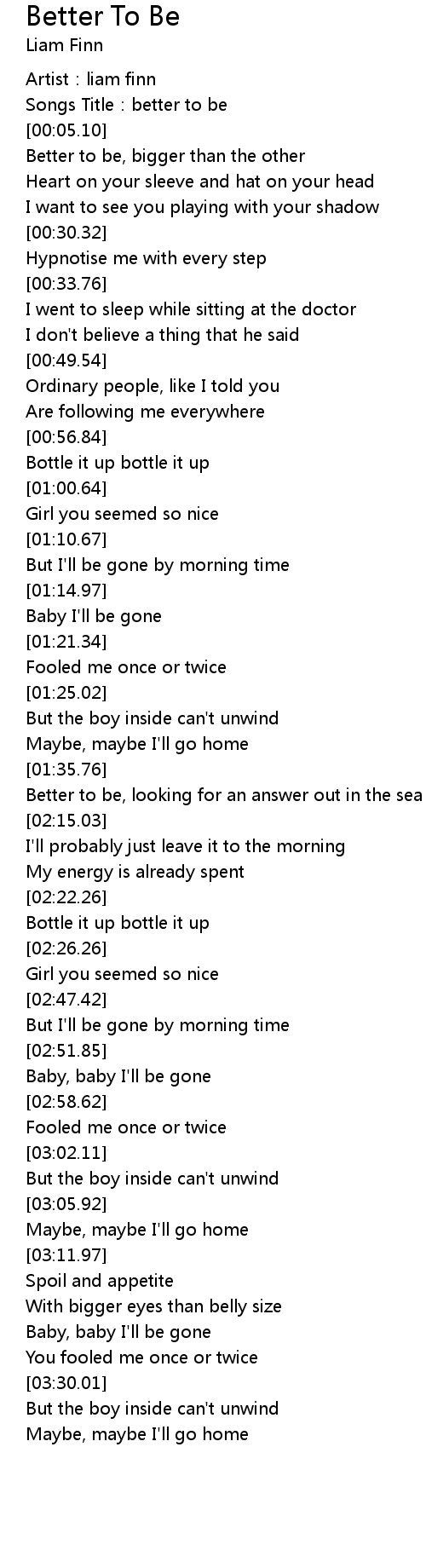 | [02:08.11] | Better to be, looking for an answer out in the sea and under your bed |