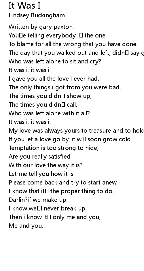 | 歌曲 | It Was I |