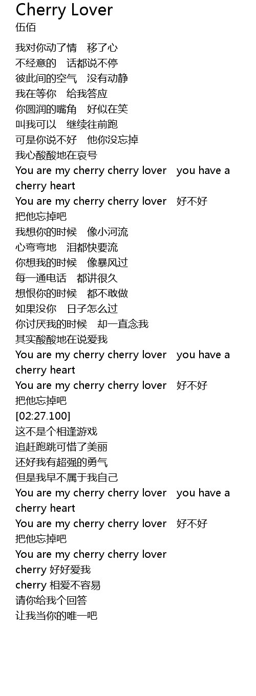| [02:18.840] | You are my cherry cherry lover hǎo bù hǎo |