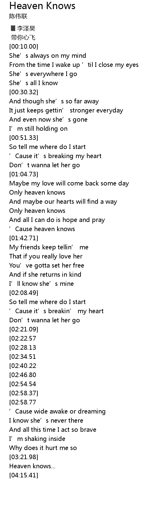 | [03:42.05][02:40.22] | Only heaven knows |