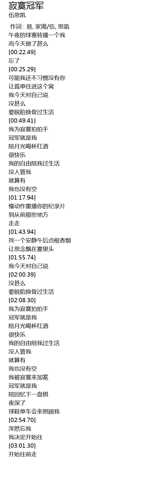 | [02:41.20] | 冠军就是我 |